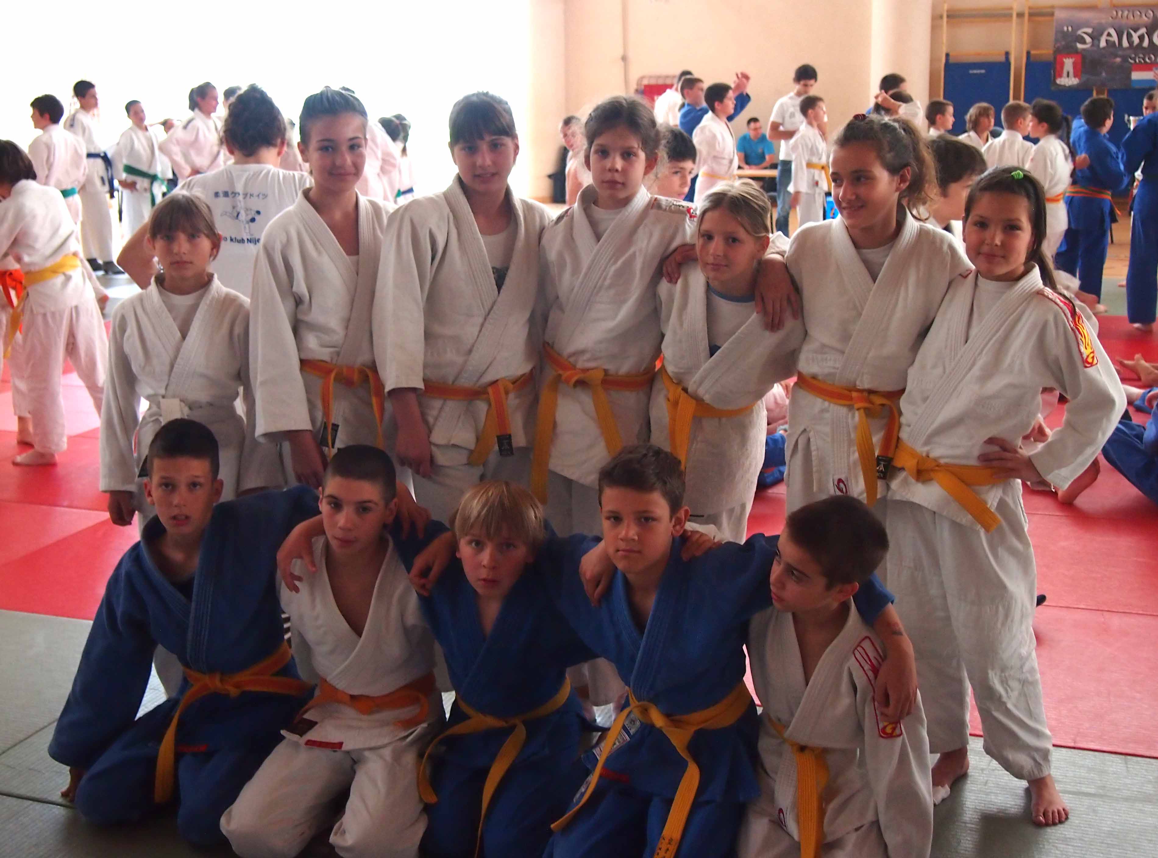 U subotu, 26. svibnja 2012.g. održano je Prvenstvo Hrvatske za dječake i djevojčice do 13. godina. Nakon regionalnih natjecanja, održanih tjedan dana ranije, ukupno 278 natjecatelja, od toga 163 dječaka i 115 djevojčica borilo se za najsjajnija državna odličja u Samoboru. U konkurenciji 47 klubova sudjelovao je i naš JK Pujanke. Na tatamiju u Samoboru pod vodstvom trenera Marina Sikirice i Slavka Preradovića nastupilo je pet dječaka i sedam djevojčica. |