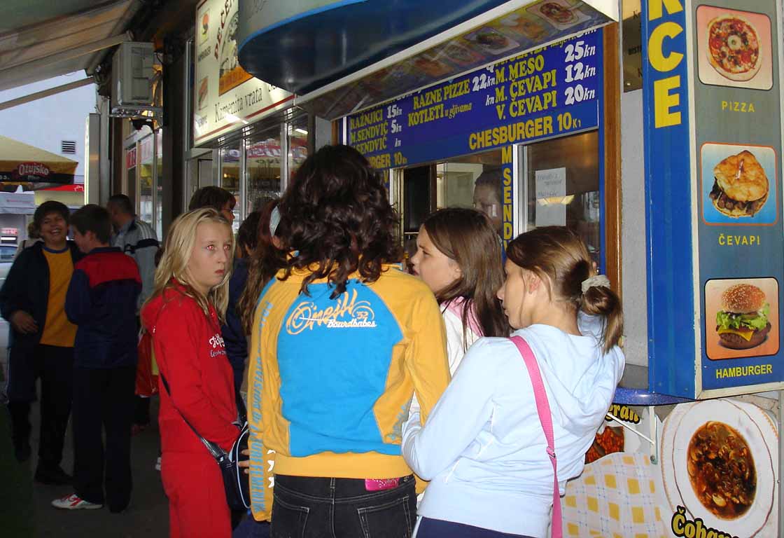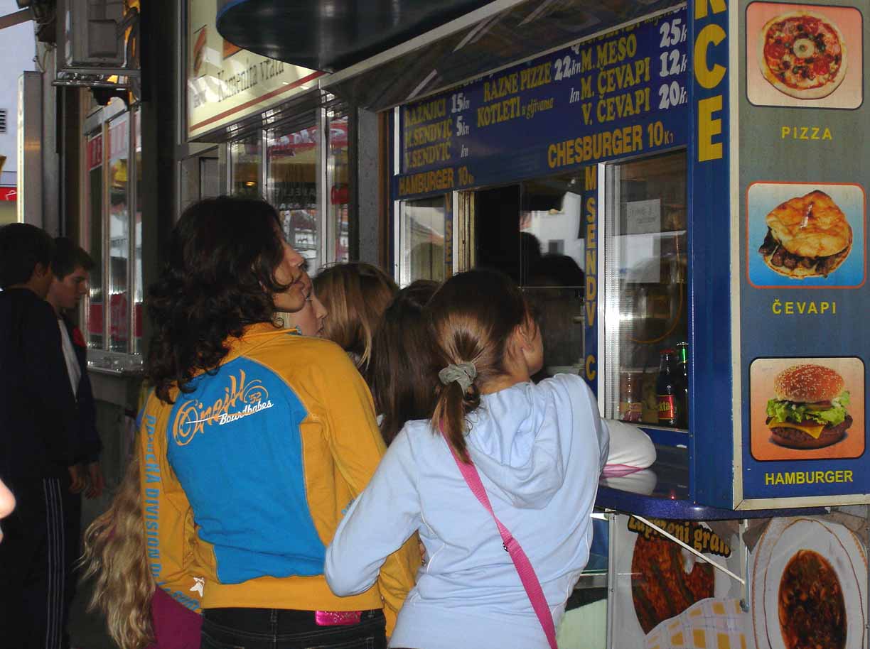 Šta da uzmem? ćevapi, topli, hot dog,... sve zdrava hrana. |
